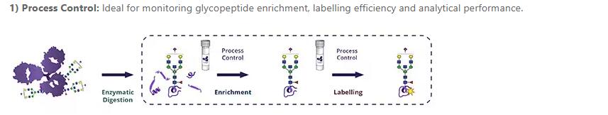 1) 过程控制:适用于监测糖肽富集、标记效率和分析性能。